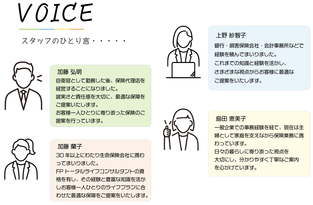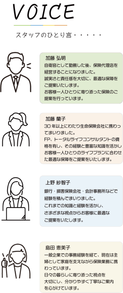 私たちは地域に根ざした保険のプロフェッショナルとして、あなたの安心を支えます。